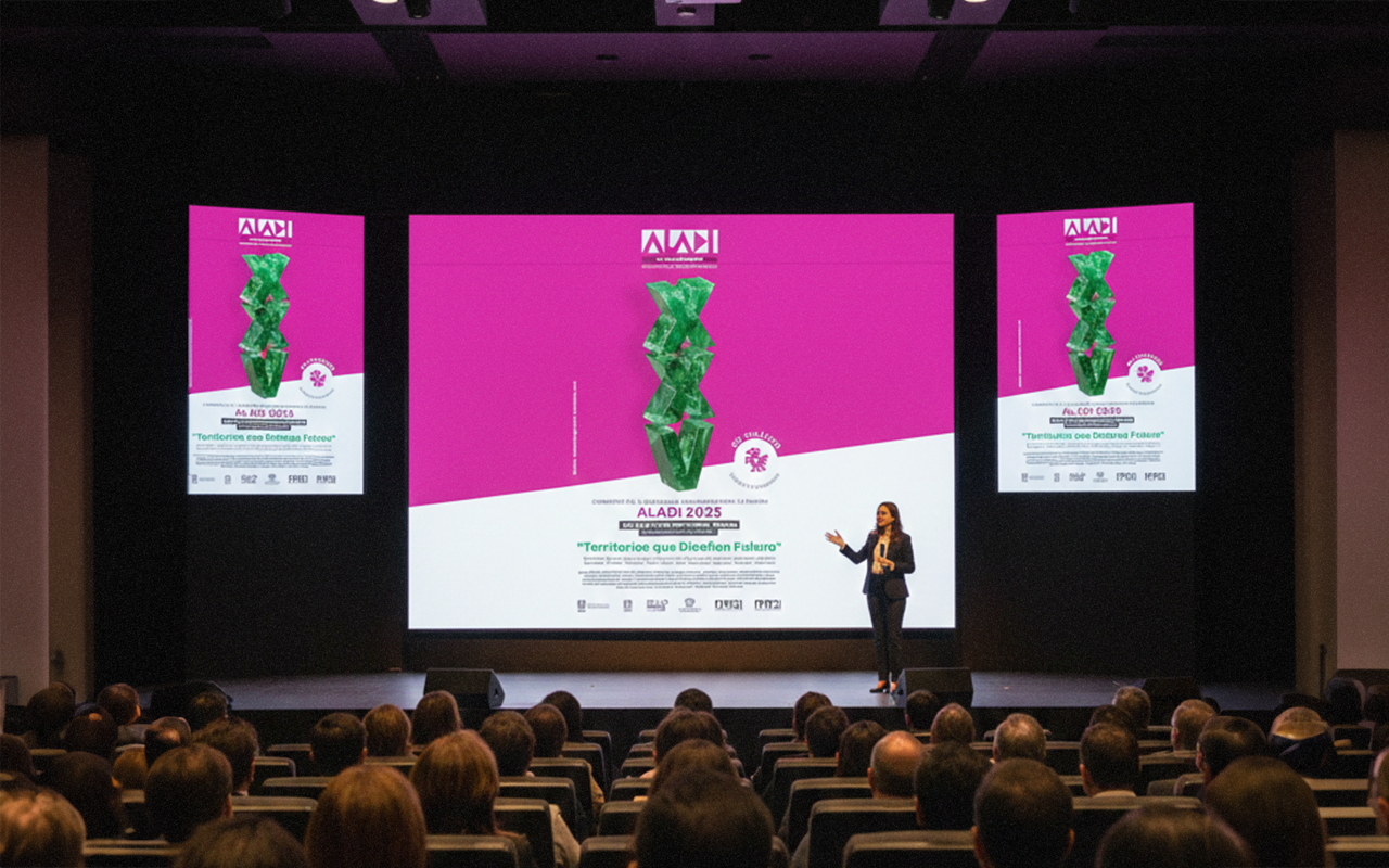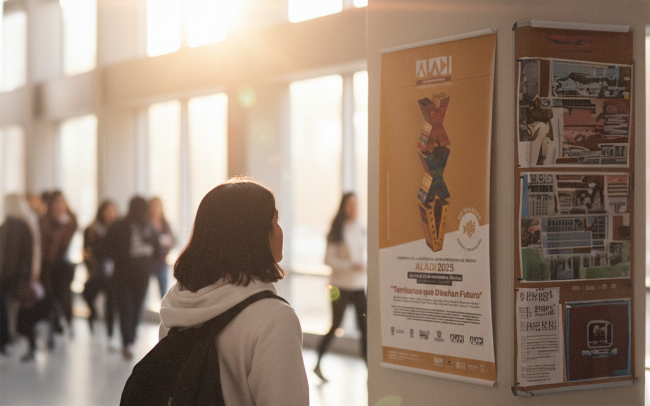 Imagen Gráfica: Se creó un sistema visual flexible que permite la convivencia de los logos institucionales (UNAM, UAEMéX, ALADI) con una estética propia para el evento, garantizando coherencia en todas las piezas.